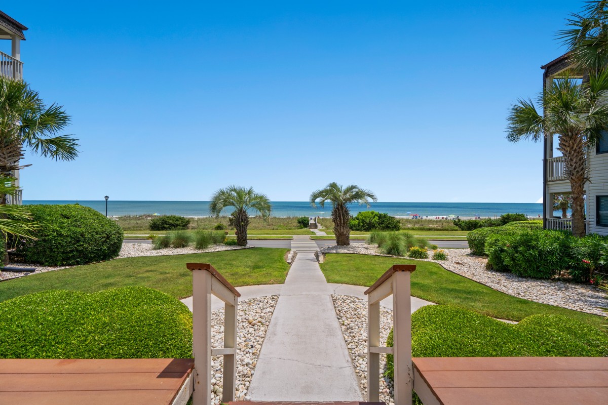 Greet each day with the invigorating oceanfront workout trail followed by a refreshing swim in the pool, setting the perfect tone for your vacation. The younger members of your group will revel in the joys of the kiddie pool and the oceanfront playground, while the romantic gazebo by the sea might inspire stolen kisses and cherished moments. A private walkway to the beach unveils the symphony of crashing waves and salty South Carolina breezes, offering an ideal setting to rejuvenate your spirit. Before returning to your condo, indulge in the convenience of an outdoor shower to rinse off the sand and sea.
